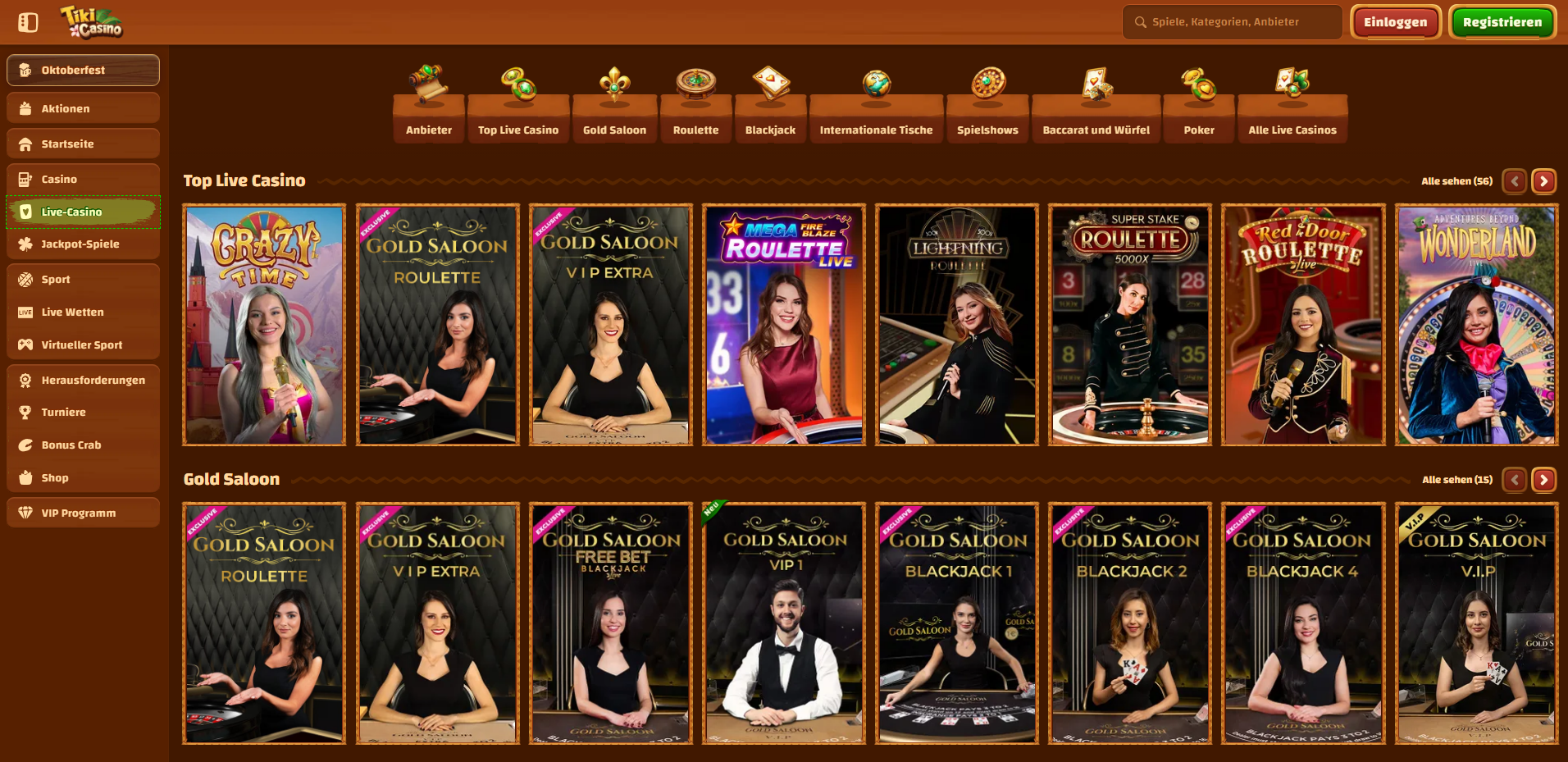 Wichtig für deutsche Spieler: Die Seite ist in deutscher Sprache verfügbar, sie zeigt lokalisierte Menüs und häufig auch lokale Zahlungsmethoden. Trotzdem ist Tiki Casino ein international ausgerichteter Anbieter, daher sind einige Promotionen und Spiele regional limitiert.